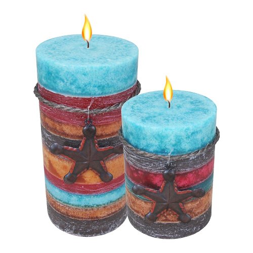 Get Southwestern style with these cactus berry and cilantro pillar candles. In teal/red/brown.Cactus berry and cilantro scent invigorates any room with an exotic aroma.Star accents lend charm and can be reused as a charm, gift tag or ornament.Parrafin wax provides long-lasting enjoyment.Lead-free cotton wicks ensure an even burn. Read more...