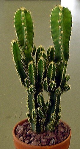 Description: This is a monstrose form of the commonly-available Cereus peruvianus. Many cacti and other succulents have a crested (referred to as cristate) or monstrose form, where the growth is abnormal in some way, being deformed into a cockscomb, or with various lumps or knobs that are different from the normal growth patterns of the plants as they would ordinarily appear. They are not sick or diseased, and you cannot make it happen on an otherwise normal plant. It just sort of spontaneously arises and is perpetuated via cuttings and grafts, as seedlings are most commonly normal if seeds are produced. Bugs don t cause it, nor does cold weather, etc. No one knows exactly why some plants do this, but they do, and many people collect them as a subset of their normal cacti and succulents. Aside from the odd knobbed growth, the plant is otherwise normal and has flowers just like the regular Cereus peruvianus. Read more...