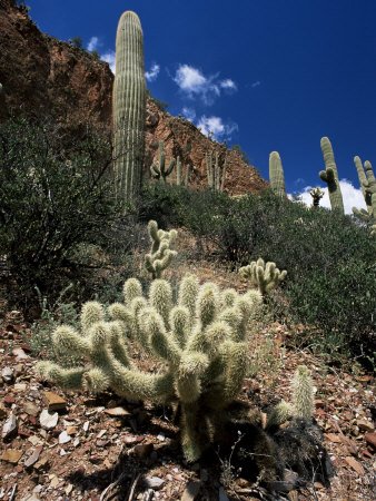 Teddy Bear Cholla (Opuntia Bigelovii), and Saguaro Cacti, Tonto National Monument, Arizona, USA Premium Photographic Poster Print by Ruth Tomlinson, 30x40 Review