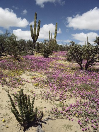 A Desert View with Red Clover Surrounding Various Cacti Photographic Poster Print by Luis Marden, 30x40 Review