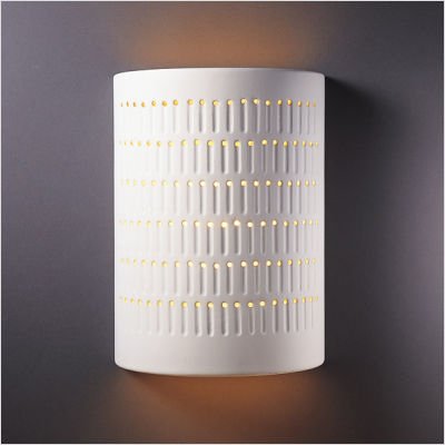 CER-2295W-MAT Finish: Matte White Pictured in Bisque Features: -Outdoor wall sconce. -Ambiance collection. -Available in 30 hand-painted finishes as well as unfinished ceramic bisque which is paintable. -Ceramic construction. -Large cactus cylinder shape with open top and bottom. -Includes patented socket shelter. -UL Listed for wet locations. -Eco-friendly. -Made in USA. Specifications: -Accommodates (1) 100W A-19 incandescent or (1) 26W GU24 fluorescent bulb. -Mounting center: 6.75''. -Overall dimensions: 13.25'' H x 9.75'' W x 5'' D. Read more...