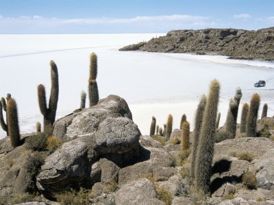 Cacti on Isla De Los Pescadores, and Salt Flats, Salar De Uyuni, Southwest Highlands, Bolivia Photographic Poster Print by Tony Waltham, 30x40 Review