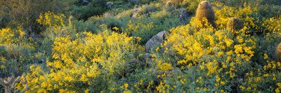 Brittlebush and Barrel Cacti in a Field, Sonoran Desert, Arizona, USA by Panoramic Images , 36x12 Review