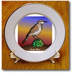 Free Shipping BIRDS cactus wren 1 on transparent - 8 Inch Porcelain Plate @ Amazon.com