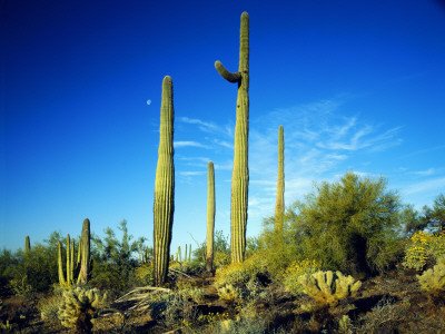 Saguaro and Organ Pipe Cactus, Palo Verde, Cholla and Brittlebush Grow under a Morning Moon Photographic Poster Print by Jeff Foott, 30x40 Review