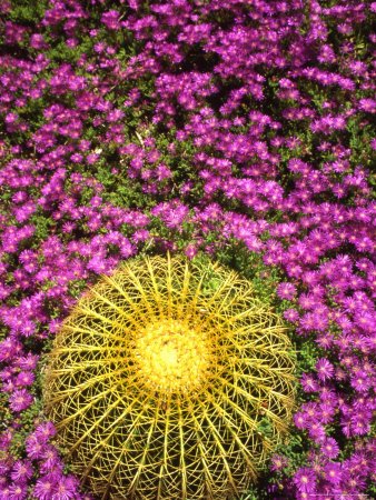 Barrel Cactus Surrounded by Asters in their Full Spring Vibrancy Photographic Poster Print by Kate Thompson, 18x24 Review